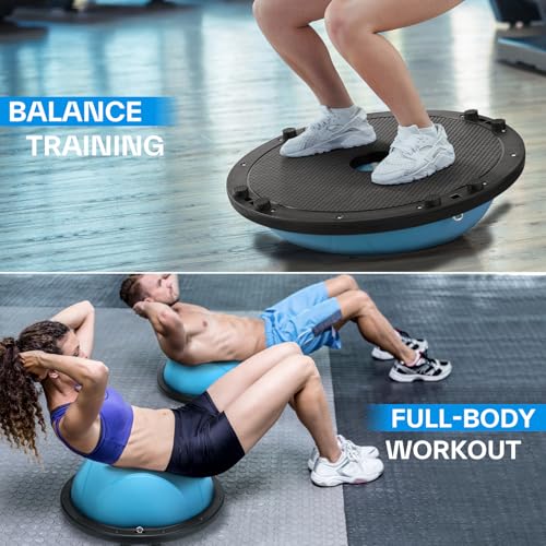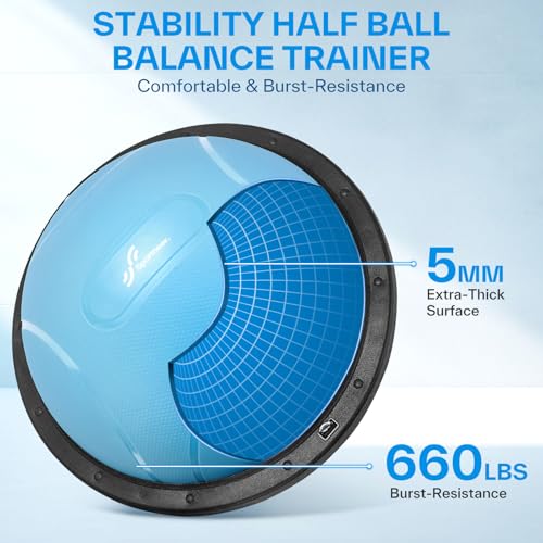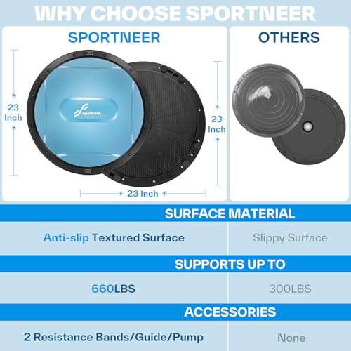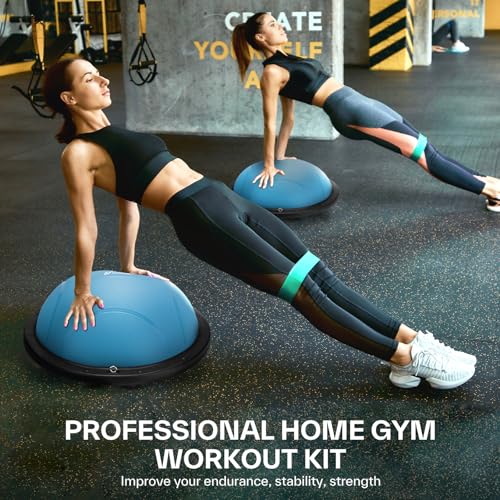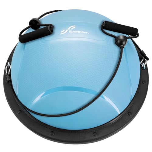 Sportneer - كرة التوازن - نصف كرة لتمارين اليوجا غير قابلة للانزلاق مع أشرطة مقاومة ومضخة لتعزيز الثبات والتدريب الأساسي وتمارين الجسم بالكامل من سبورتنير - معدات اللياقة البدنية المنزلية والجيم