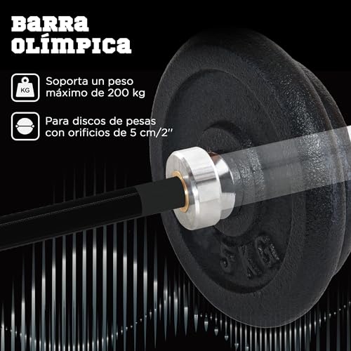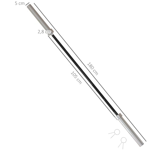 SPORTNOW - بار رفع أثقال من الصلب بطول 1.8 م وقطر 5 سم ويزن 15 كجم مع حلقتين، عمود أولمبي للأوزان بقطر 5 سم للتدريب في الجيم والمنزل وقدرة تحمل حتى 200 كجم من سبورت ناو، لون أسود