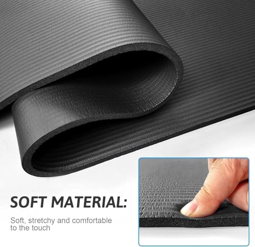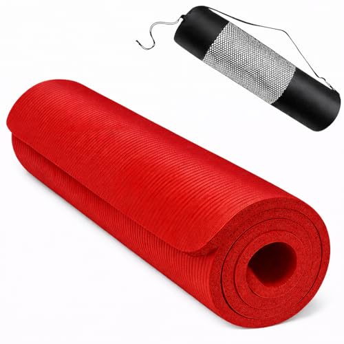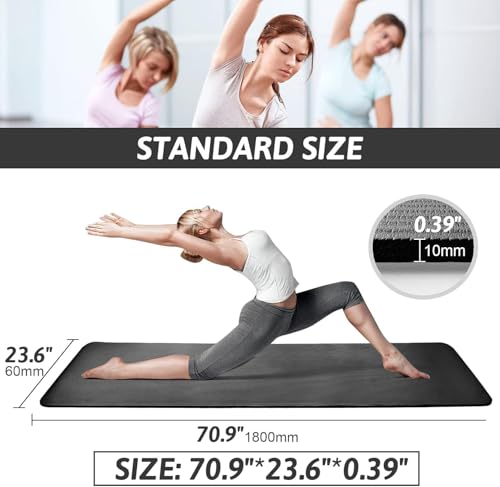 SportQ - بساط يوغا مضاد للانزلاق بسماكة 10 ملم من سبورت كيو®️ مع سوار مرفق مثالي للتمارين المتقطعة عالية الكثافة والبيلاتس واليوغا والعديد من التمارين المنزلية الاخرى