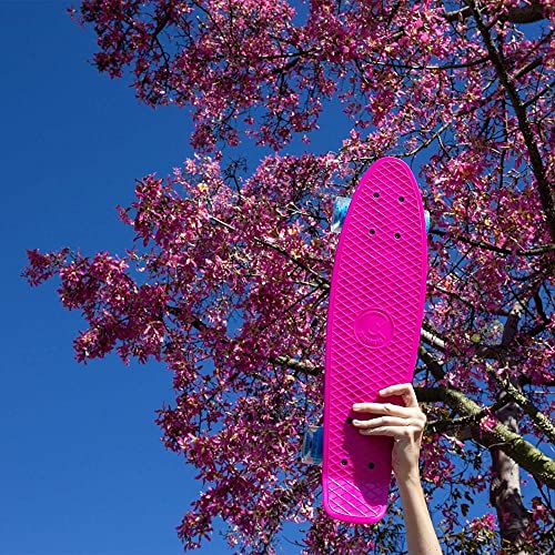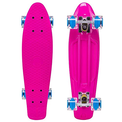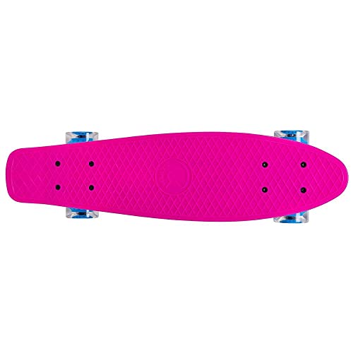 SportQ - لوح تزلج كروزر فيش مضيء بإضاءة ليد 55.88 سم، سطح كامل 4 عجلات بولي يوريثان وسطح متين للأطفال الأولاد من سبورت كيو (وردي)