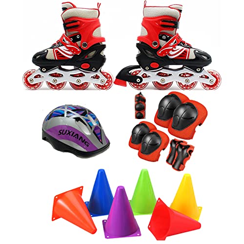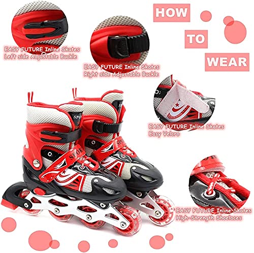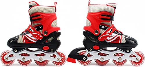 SportQ - حذاء تزلج مريح قابل للتعديل بعجلات أمامية ليد، حذاء تزلج بصف واحد من العجلات للاستخدام الداخلي والخارجي للمبتدئين والأطفال والمراهقين مقاس L (مقاس M) - أسود