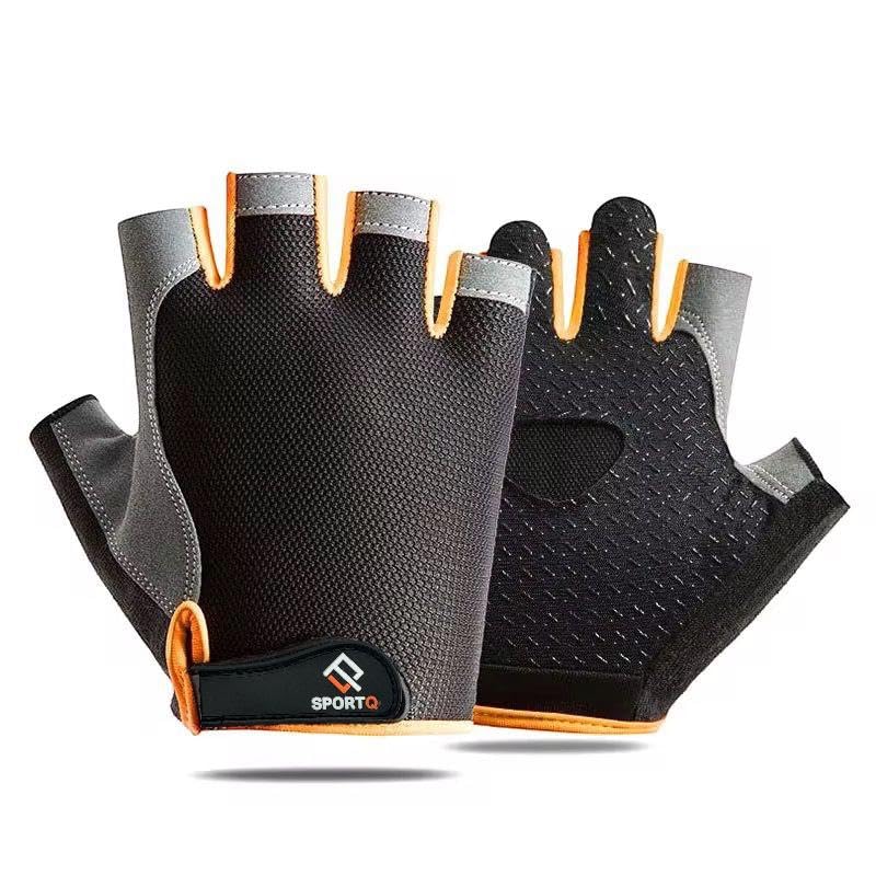 SportQ - سبورت كيو قفازات رياضية نصف اصبع للرجال والنساء - مبطنة بالجل، غير قابلة للانزلاق، جيدة التهوية، مع وسادة ماصة للصدمات لرفع الاثقال وصالة الالعاب الرياضية واللياقة البدنية (برتقالي، XL)