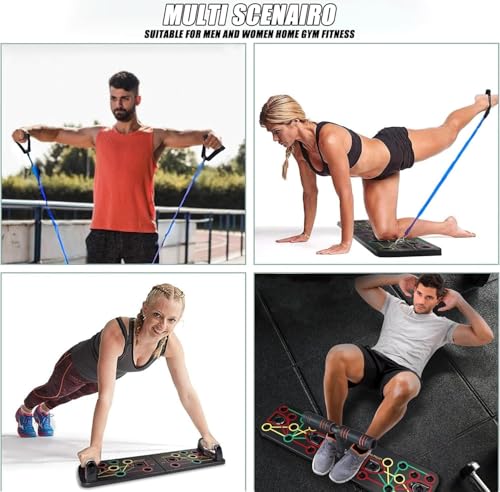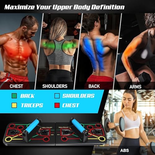 - ✅✅ 14 في 1 لتدريب كامل للجسم : نظام ألوان مخصص لكل عضلة: الأحمر للصدر، الأزرق للكتف، الأصفر للظهر، والأخضر للترايسيبس.