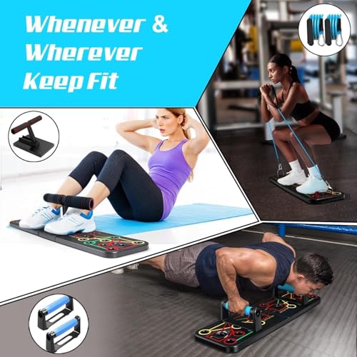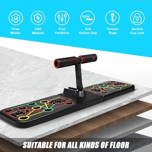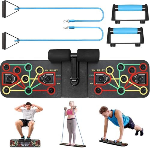 SportQ - لوح تمارين الضغط من SportQ®️ مع حامل للجلوس، قضيب رفع متعدد الوظائف مع اشرطة مقاومة، معدات تدريب القوة المنزلية، مقابض رفع لتمارين الضغط المثالية، اللياقة البدنية المنزلية