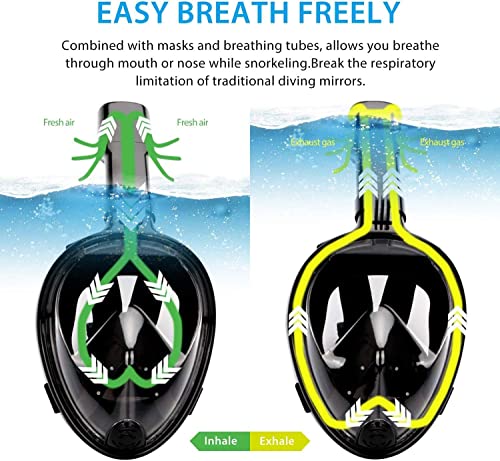 - 【قياس مثالي وبدون تسرب】 - إبزيم إغلاق بزر دفع لسهولة ضبط الحزام، يناسب أي شكل للوجه بشكل جيد. صُممت حافة قناع الغوص من السيليكون الناعم والمرن، مما يخلق إغلاقًا محكمًا للماء بوجه الغواص. مريح ومقاوم للتسريب.