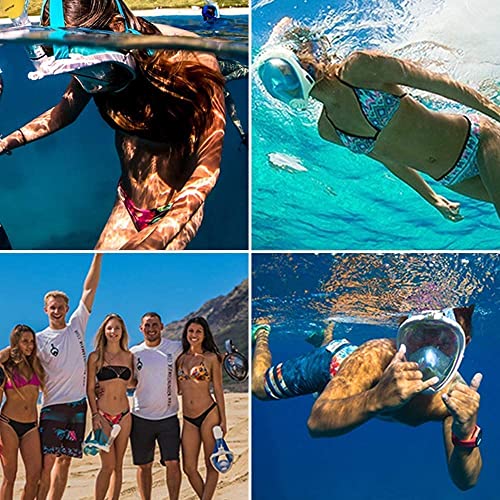 - 【أحدث تصميم مضاد للضباب】 - مجموعة الغوص 2021 مصنوعة من عدسات زجاجية مقوي. الجزء الداخلي من الزجاج مغطى بقطعة من غشاء مضاد للضباب والصدمات لامتصاص بخار الماء بالكامل ومنع الضباب. يوفر لك رؤية بحرية مثالية تحت الماء، مثالية للغوص السطحي والسباحة