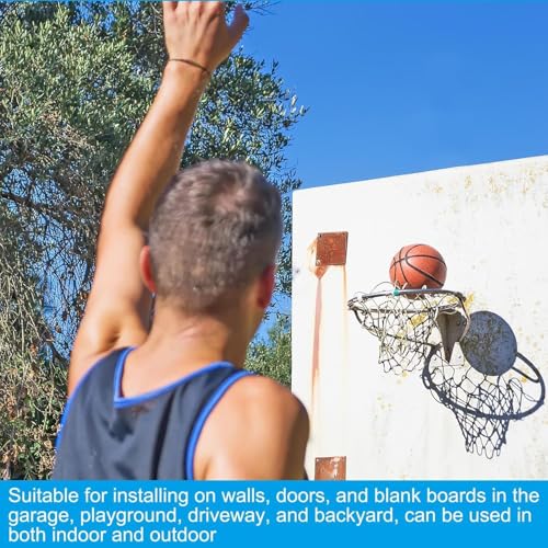 - 🏀🏀مثبتة على الباب والحائط: مجموعة أطواق مرمى كرة السلة هذه هي الخيار الأمثل للعب في الأماكن المغلقة والمفتوحة، ومجهزة بـ 4 براغي توسيع، يمكن تركيبها في العديد من المواقف، بغض النظر عن الحائط أو الباب أو اللوحة الخلفية الأخرى، تركيب بسيط وثابت.