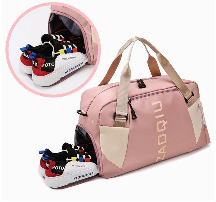 Generic - شنطة رياضية مع جيب للحذاء شنطة كتف متعددة الوظائف 52 × 26 سم (بينك)