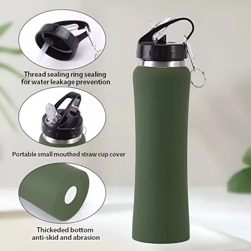 Generic - زجاجة رياضية معزولة - قارورة مزدوجة الجدار من الستانلس ستيل قابلة لاعادة الاستخدام مع ماصة، مانعة للتسرب، خالية من BPA للمشروبات الساخنة والباردة، للاستخدام الخارجي واللياقة البدنية (لون 2)
