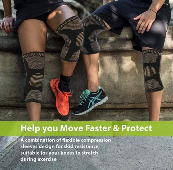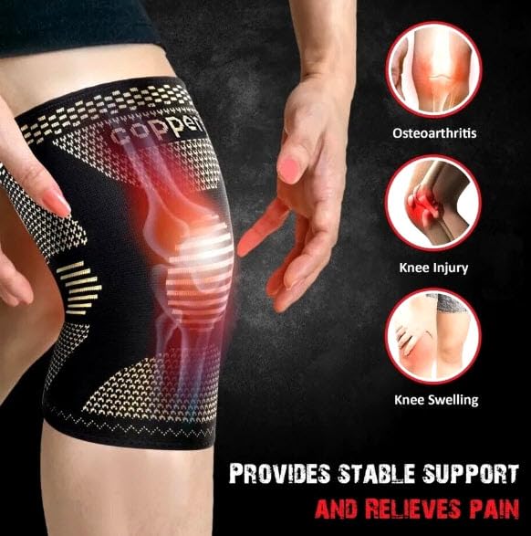 - دعم شامل: نسيج مرن مع ألياف النحاس يوفر دعماً متعدد الاتجاهات للركبة مع الحفاظ على مرونة الحركة