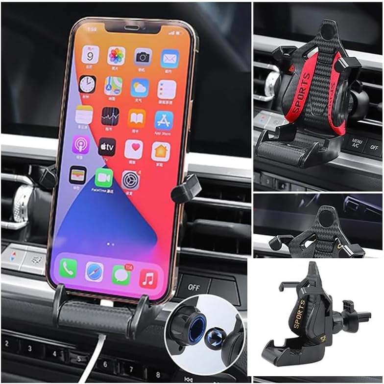 - ✅حامل هاتف للسيارة بتصميم مقعد سباق رياضي. يتميز بتصميم يشبه مقعد السيارة الرياضي .