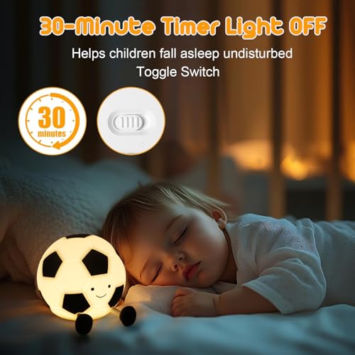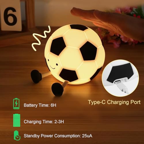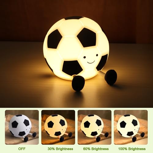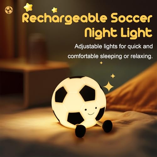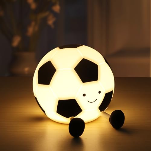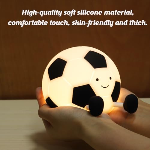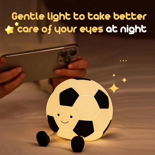 NEXLUME - مصباح ليلي بتصميم رياضي للاطفال، مصباح LED قابل للتعتيم بـ3 مستويات مع لمسة ناعمة، اكسسوارات اضاءة ليلية لكرة القدم قابلة لاعادة الشحن من السيليكون، هدايا لمحبي كرة القدم