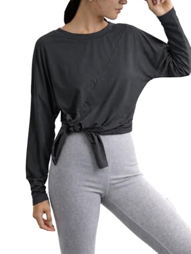 Nileton - تيشرت بأكمام طويلة وفتحة جانبية - تيشرتات كاجوال طويلة برقبة دائرية ضيقة للتمارين الرياضية والأماكن الخارجية للنساء