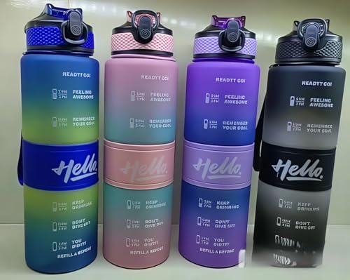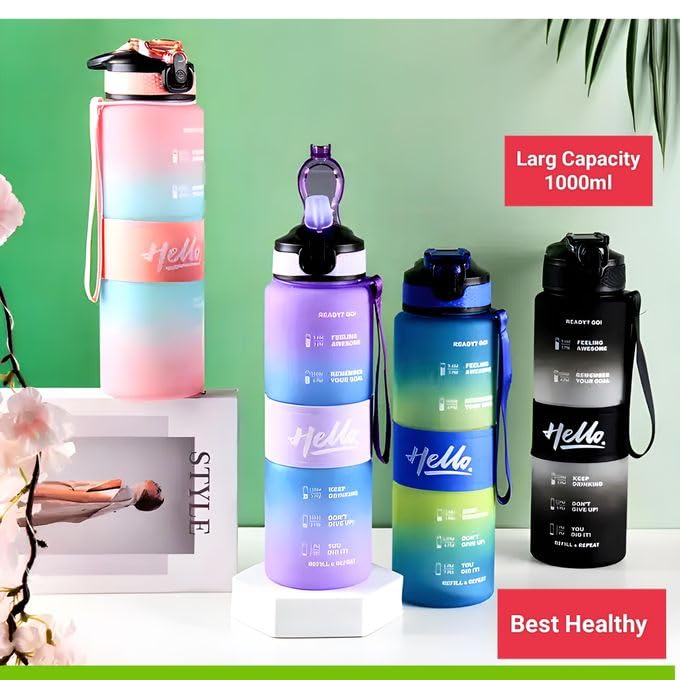 Generic - زجاجة مياه رياضية كبيرة بمؤشر وقت تحفيزي وتدفق سريع، خالية من البيسفينول أ وغير سامة، مناسبة للياقة البدنية والجيم والرياضات الخارجية، متعددة الألوان، 1 ل