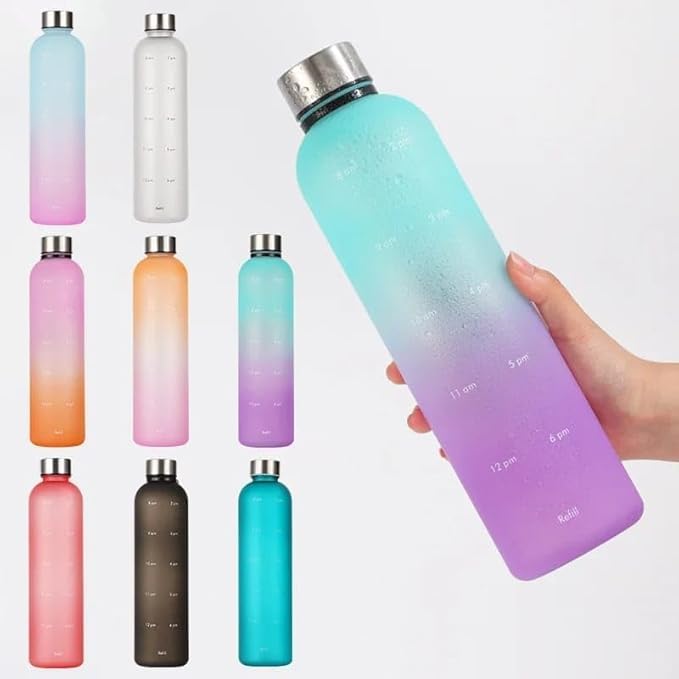 Generic - زجاجة مياه رياضية 1000 مل خالية من مادة بيسفينول ا ومانعة للتسرب للسفر والتمارين الرياضية الخارجية والمنزل والمدرسة وصالة الالعاب واليوجا والمكتب- متعددة الالوان
