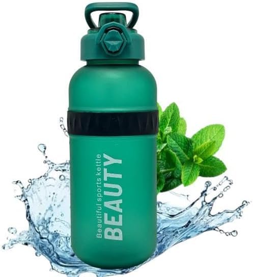 Generic - زجاجة مياه رياضية تحفيزية سعة 1.5 لتر، مع علامات وقت قابلة للإزالة، خالي من مادة بيسفينول أ ومانعة للتسرب للجيم (أسود)(أخضر)