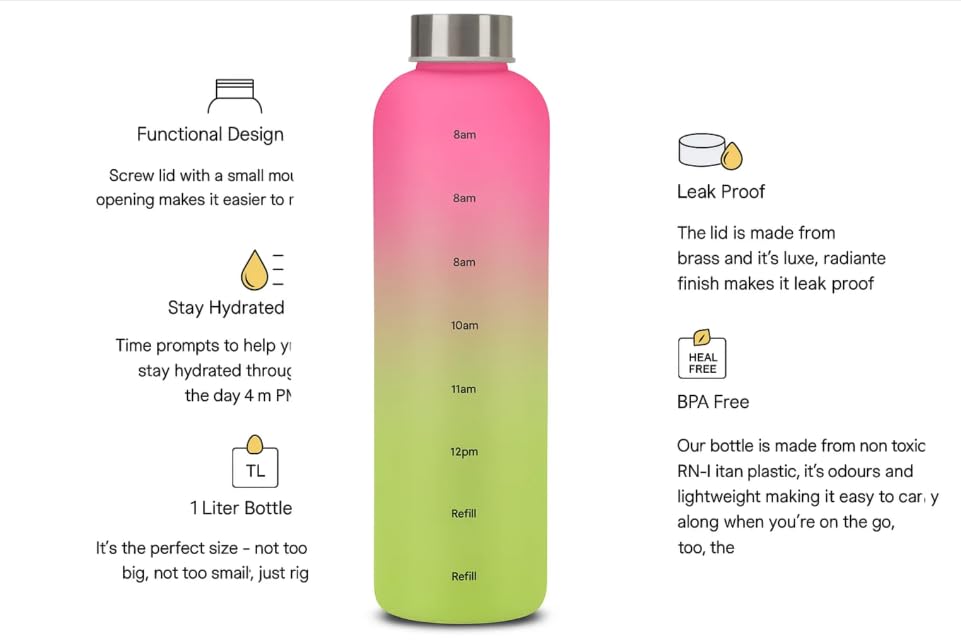Generic - زجاجة مياه رياضية سعة 1 لتر