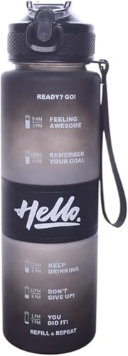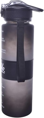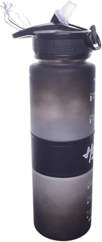 Generic - زجاجة مياه رياضية (زجاجة مياه رياضية سعة 1لتر للياقة البدنية مع شفاطة وحزام بلاستيكي عصري تناسب الجميع للطلاب ( اسود))