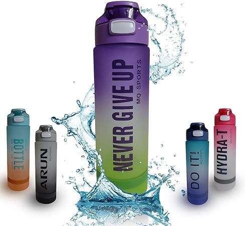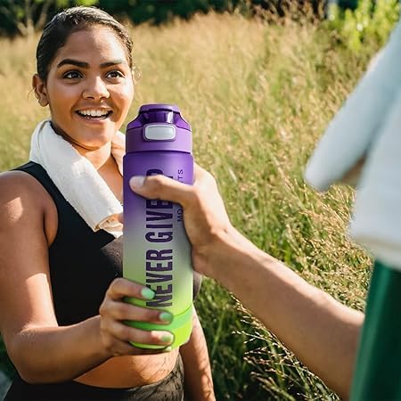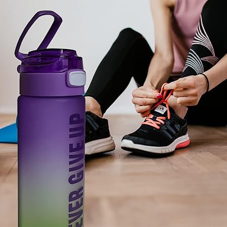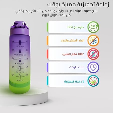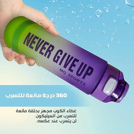 Generic - زجاجة مياه رياضية سعة 1 لتر تصميم تحفيزي خال من البيسفينول ا مانعة للتسرب للسفر واللياقة البدنية والرياضات الخارجية والمنزل والمدرسة وصالة الالعاب الرياضية واليوغا والمكتب - (بنفسجي واخضر)
