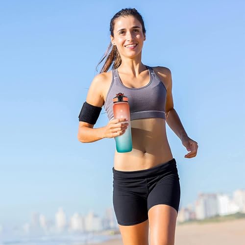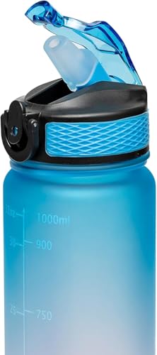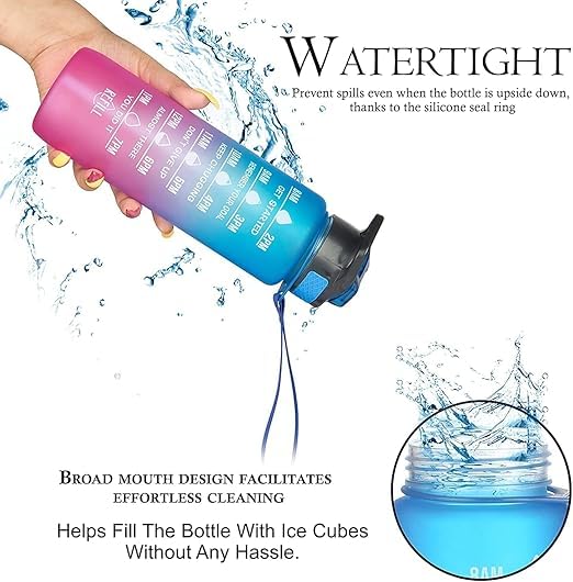 Generic - زجاجة مياه رياضية سعة 1 لتر مع علامات زمنية مانعة للتسرب وخالية من BPA لصالة الالعاب الرياضية والمكتب والمدرسة والسفر واللياقة البدنية في الهواء الطلق قابلة لاعادة الاستخدام للاطفال والكبار (أرجواني)