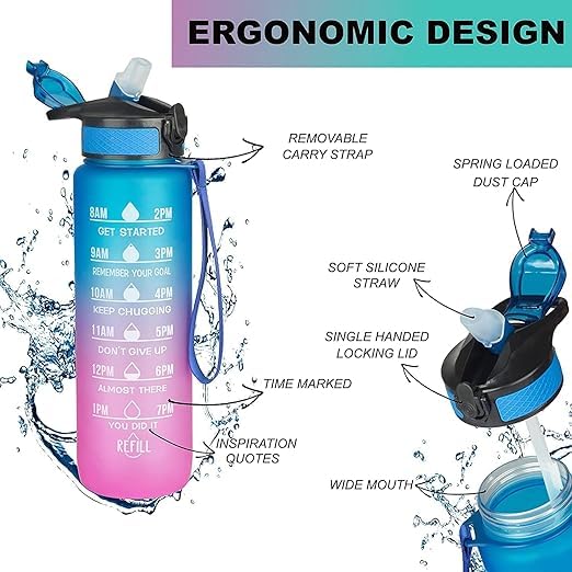 - ابق رطبًا طوال اليوم - يذكرك مؤشر السعة والوقت بسعة 1 لتر بشرب الماء بانتظام، مما يحافظ على مستويات الطاقة عالية في العمل أو المدرسة أو صالة الألعاب الرياضية.