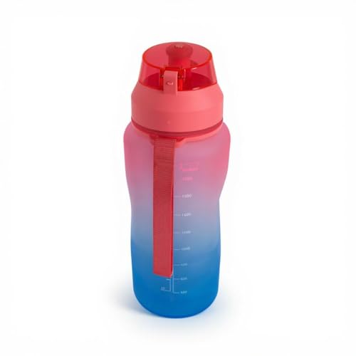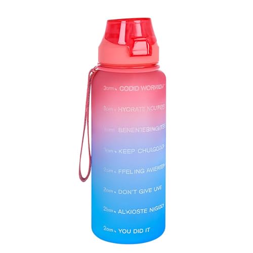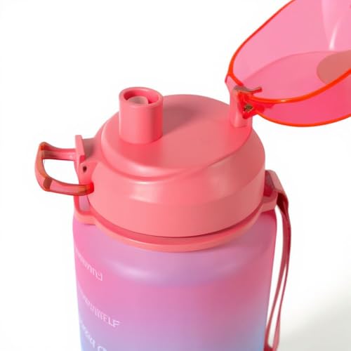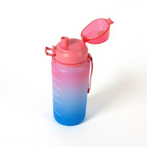 Generic - زجاجة مياه رياضية مع شفاطة واقتباسات تحفيزية وعلامات زمنية وغطاء قلاب مانع للتسرب بمشبك علوي وحزام حمل وخالية من BPA، لون أزرق ووردي، سعة 2.2 لتر