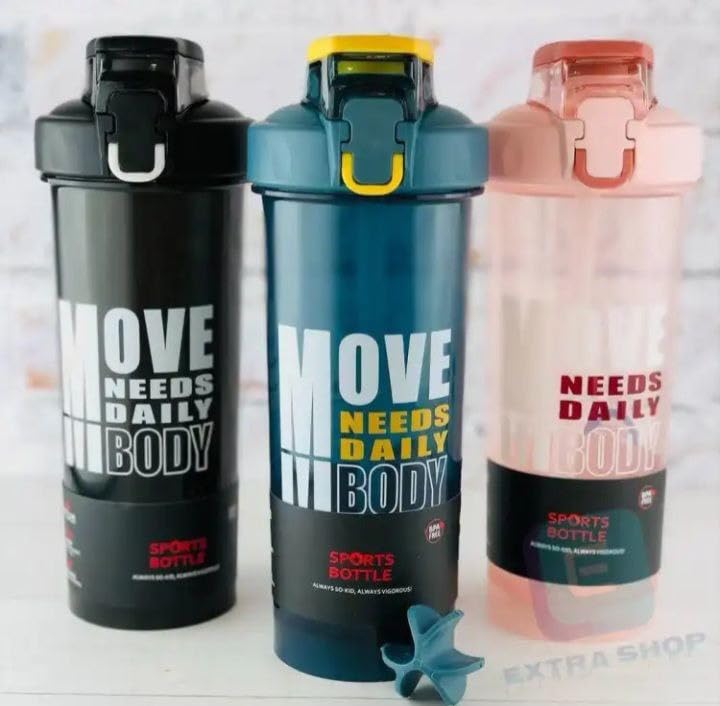 Generic - زجاجة مياه رياضية 900 مل – خفيفة الوزن وخالية مع ملعقة خلط قوية للمكملات والعصائر