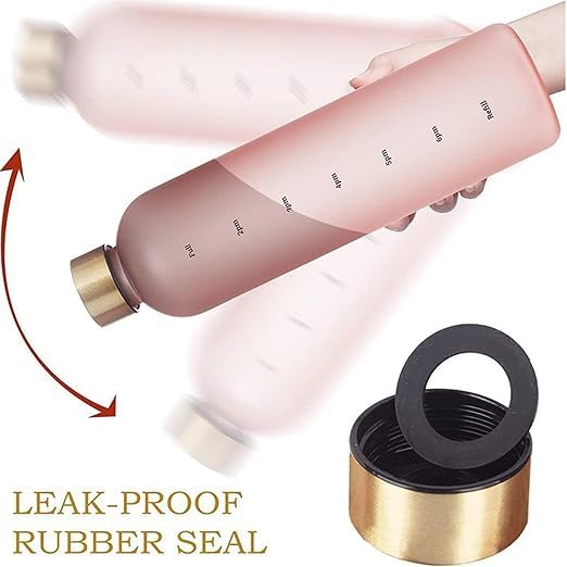 Generic - زجاجة ماء رياضية شفافة مع مؤشر زمني | زجاجة ماء تحفيزية متدرجة الألوان سعة 1 لتر، زجاجة ماء كبيرة مانعة للتسرب للرياضة والأنشطة الخارجية