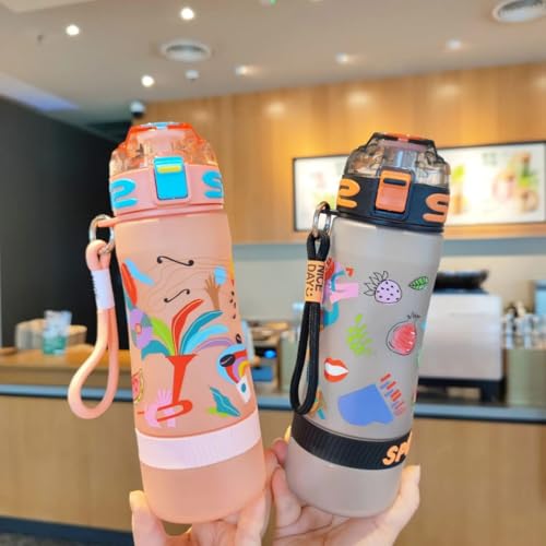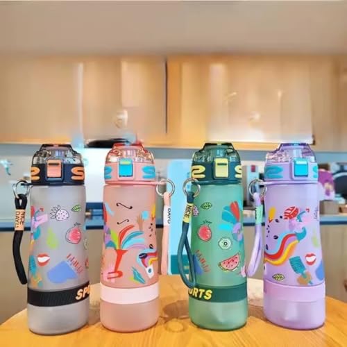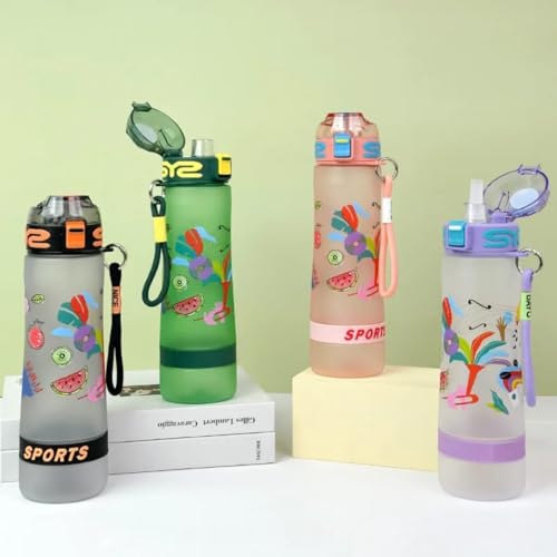 Generic - زجاجة مياه رياضية بتصميم حديث برسومات فواكه ملونة 750 مل، غطاء آمن مع قفل وحزام حمل، متوفرة بألوان متعددة