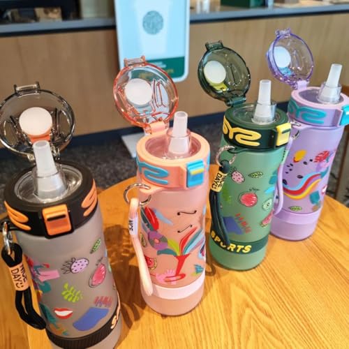 - تصميم عصري: زجاجة مياه رياضية بتصميم مميز مع رسومات فواكه ملونة وجذابة تناسب جميع الأذواق