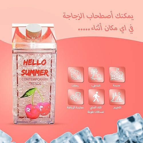- تصميم أنيق ومتعدد الاستخدامات: تضيف زجاجة المياه ذات الشكل المربع هذه لمسة من الأناقة إلى روتين شرب الماء الخاص بك. مثالية للنزهات الصيفية والنزهات والرياضات والاستخدام اليومي، إنها أكسسوار لا غنى عنه يبقيك منتعشًا وحيويًا طوال اليوم.