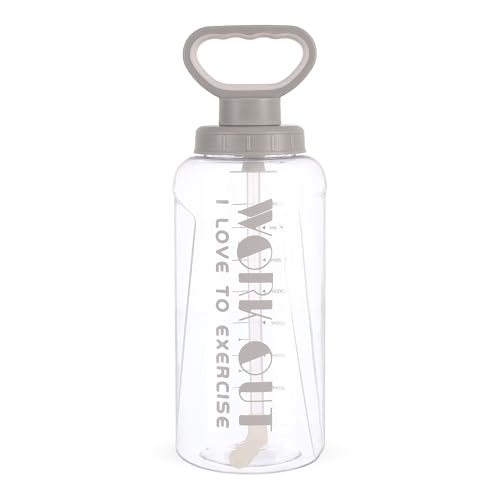 Generic - زجاجة مياه رياضية بمقبض مزودة بمقياس قياس، لون رمادي، سعة 1800 مل