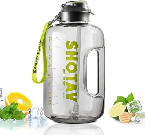 Generic - زجاجات مياه رياضية مصنوعة من مادة التريتان الأمريكي خالية بيسفينول أ بنسبة 100% ومضادة للتسرب زجاجة بسعة نصف جالون تفتح بنقرة واحدة للمدرسة واللياقة البدنية والرياضات الخارجية 1/1.5/2 لتر، مواد مختلطة