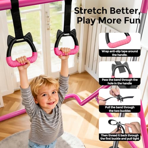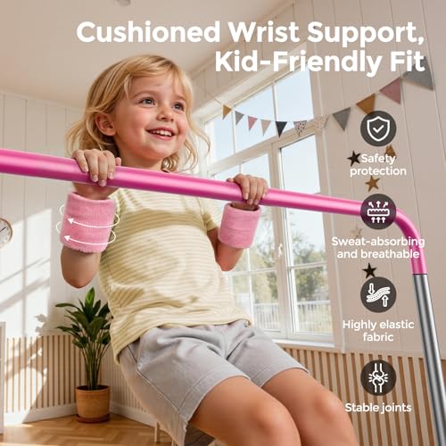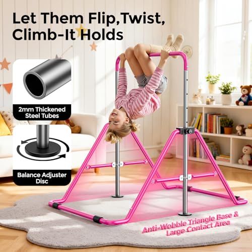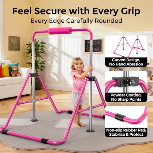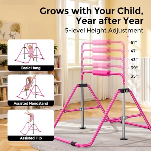 Sportsroyals - سبورتسرويالز قضيب جمباز للاطفال، معدات جمباز بارتفاع قابل للتعديل للبنات، قضيب تدريب للصغار قابل للطي للمنزل، زهري