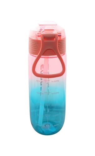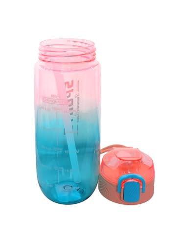 Generic - زجاجة مياه بلاستيكية سبورتي، 650 ملليلتر، أزرق ووردي