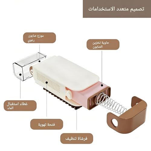 Generic - حامل صابون زنبركي مع فرشاة دوارة - موزع محمول 3 في 1 للمطبخ والحمام والحوض ومصارف الأحذية وتنظيف الأرضيات؛ نظام صابون رغوي لتنظيف فعال للون عشوائي. (قطعة 1)