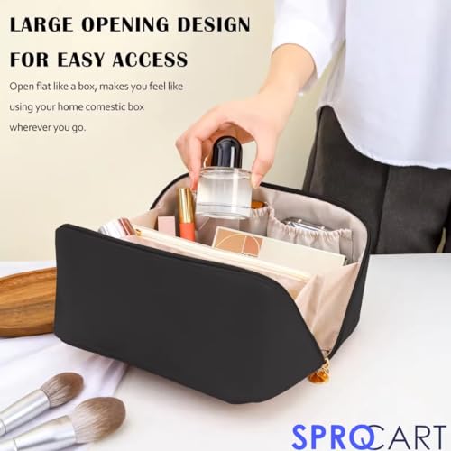 Sprqcart - شنطة مستحضرات تجميل للسفر بسعة كبيرة مع مقبض ومقسم من سبكارت - شنطة مكياج متعددة الوظائف لسهولة الوصول، مقاومة للماء، لون اسود، ملحقات السفر
