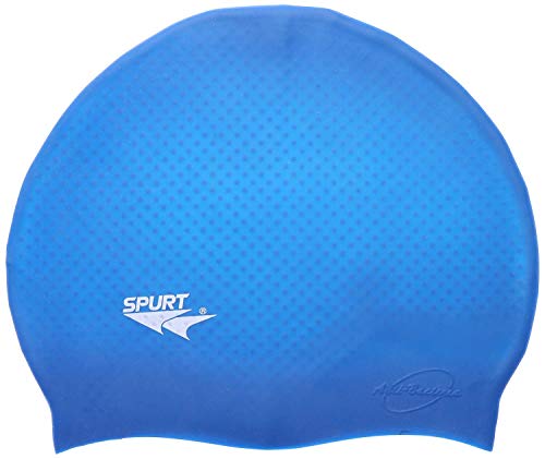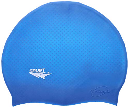 Spurt - بونيه سباحة من السيليكون الحبيبي مع شنطة بسوستة من سبورت، لون أزرق