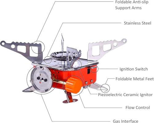 - تصميم جذاب للموقد - موقد غاز البوتان المقاوم للرياح هذا ثابت وآمن لأن موقد التخييم المحمول هذا يحتوي على نظام قدم لتحمل الوزن. يحتوي هذا الموقد المحمول على نظام دعم قاعدة بأربعة أذرع - وهو داعم جدًا لأواني الطهي لطهي الطعام.