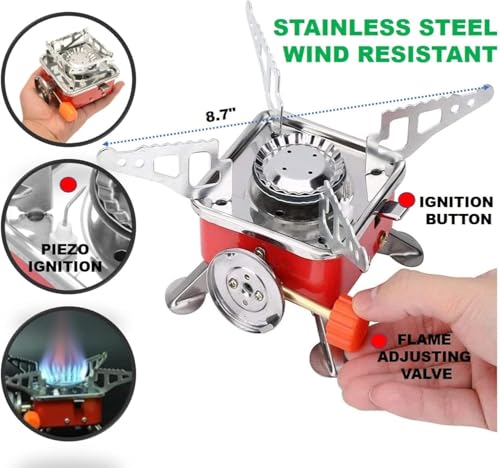Generic - موقد غاز مربع للرحلات والتخييم في الهواء الطلق، بوتاجاز غاز محمول من غاز البوتان للتخييم في الهواء الطلق والنزهات والمشي لمسافات طويلة والسفر وطهي الطعام | أسطوانة من الفولاذ المقاوم للصدأ