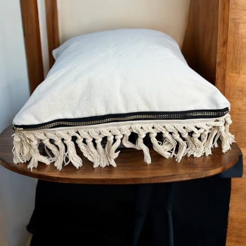 - اللون: اوف وايت مع شراشيب مكرمية مزخرفة