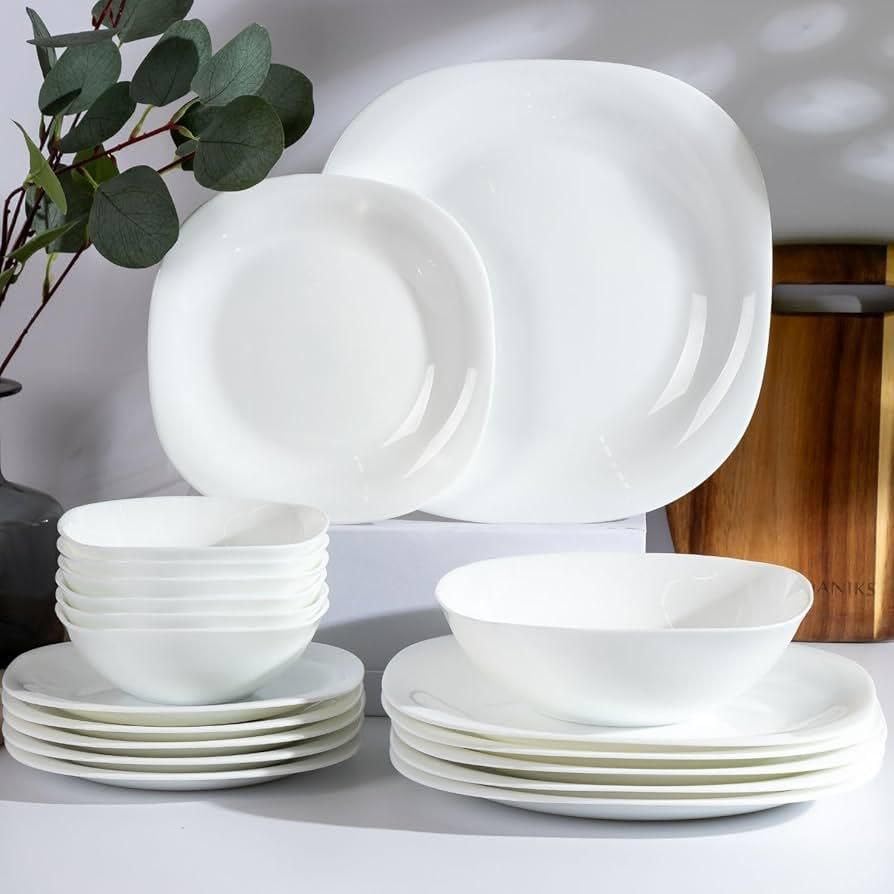 Generic - طقم عشاء وأدوات مائدة مربع 24 قطعة اركوبال أبيض عصري لخدمة 6 أشخاص