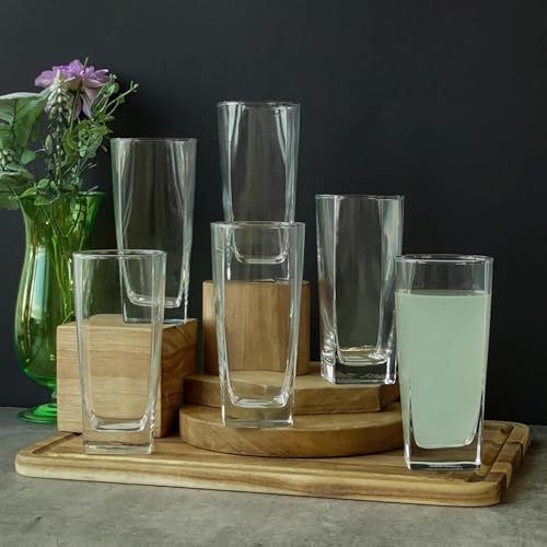 Generic - مجموعة أكواب زجاجية مربعة، أكواب زجاجية سميكة عالية الجودة مخصصة للماء والشاي والعصير، القهوة وغيرها، أدوات زجاجية أنيقة وعصرية (شفافة (6 قطع))