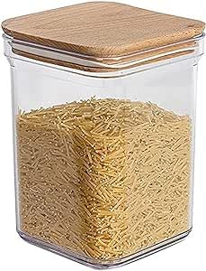 Generic - برطمان تخزين زجاج مربع الشكل بغطاء خشب - شفاف وبيج