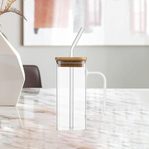 Generic - كوب زجاجي مربع مع مقبض مع شفاطة وغطاء خشبي محكم الغلق - تصميم فريد وعصري لتجربة شرب فريدة وآمنة من برايم شوب