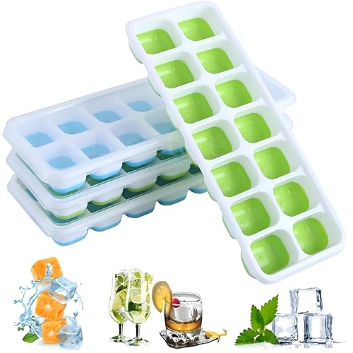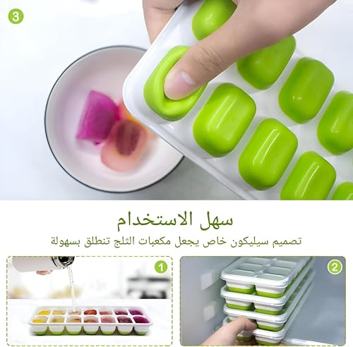 Generic - قوالب مكعبات ثلج مربعة الشكل - تصميم 14 تجويف مع غطاء لصنع الثلج متعدد الاستخدامات وخيارات متعددة الألوان الزاهية (4 قطع)