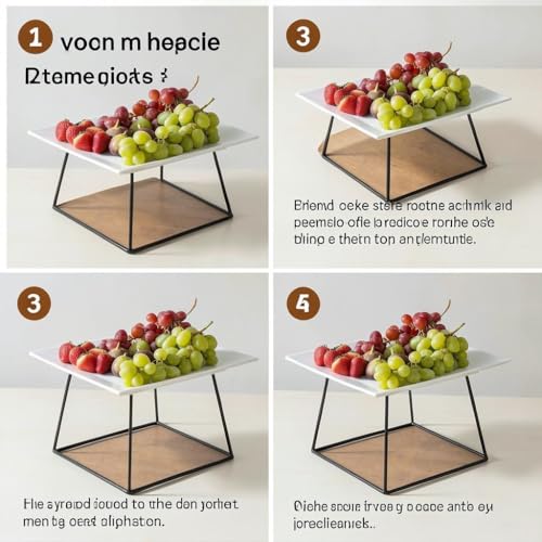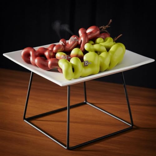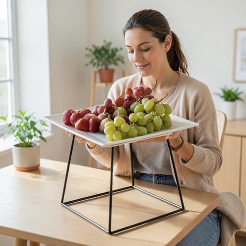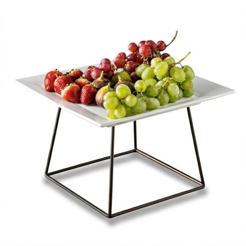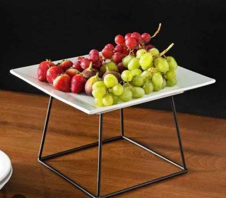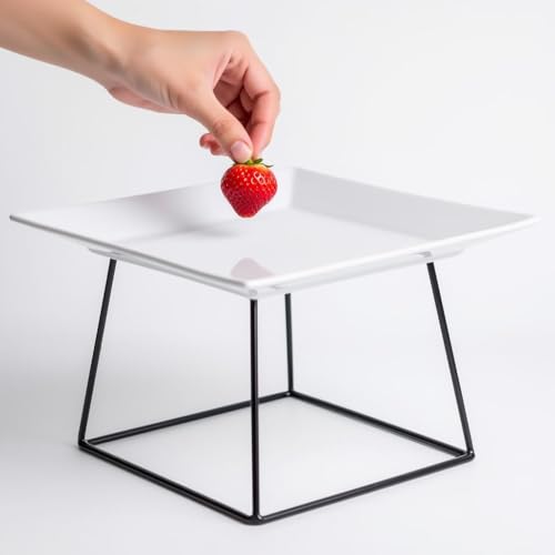 - يتوفر هذا الحامل المعدني في خيارين للارتفاع - 17 سم و10 سم - كل منهما مع طبق مربع أبيض نقي مقاس 27 × 27 سم، مما يوفر حلول عرض متعددة الاستخدامات للمقبلات أو الحلويات أو الأطباق اليومية أو البيتزا، مما يعزز إعداد أي طاولة بأناقة وعملية.