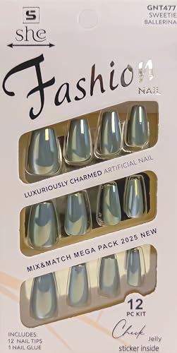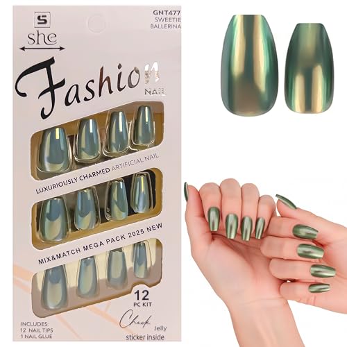 Generic - اطراف اظافر مربعة - مجموعة من 12 طرف اظافر و1 غراء للاظافر، تغطية كاملة مسبقة التشكيل وصمغ اظافر احترافي، تطبيق سريع وسهل (اخضر مينت)