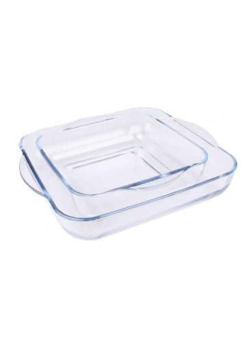 generic - طقم اطباق فرن مربعة - قطعتين شفاف