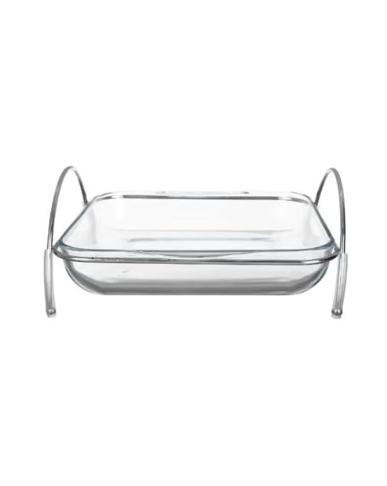generic - كسرولة زجاجية مربعة الشكل وحامل فضي 31.8 × 28.3 سم - صناعة تركية.